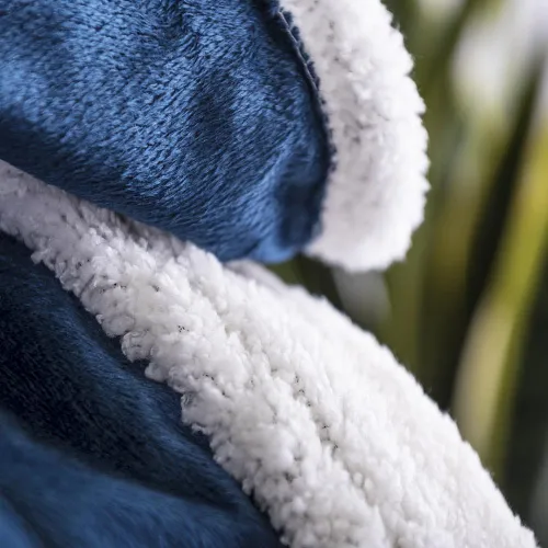 125x160cm size, in a soft and warm combination of coral fleece and sherpa materials in 380g/m2. Presented in a ribbon with a foil for easy printing.