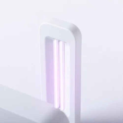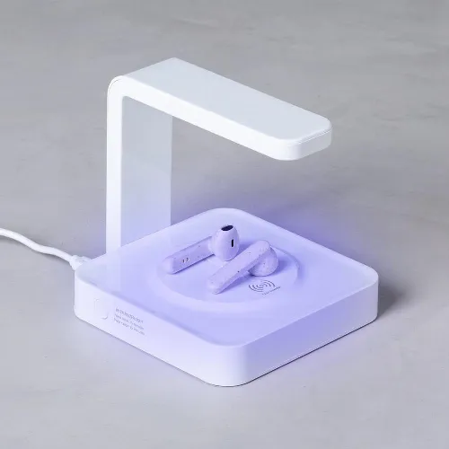 Ultraviolet light sterilizer lamp type C with integrated wireless smartphone charger.