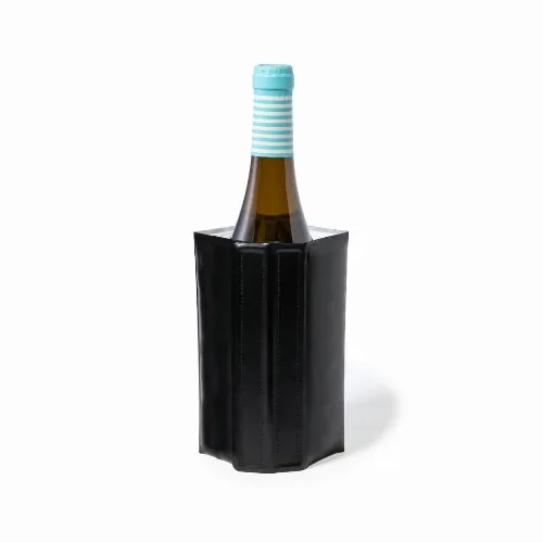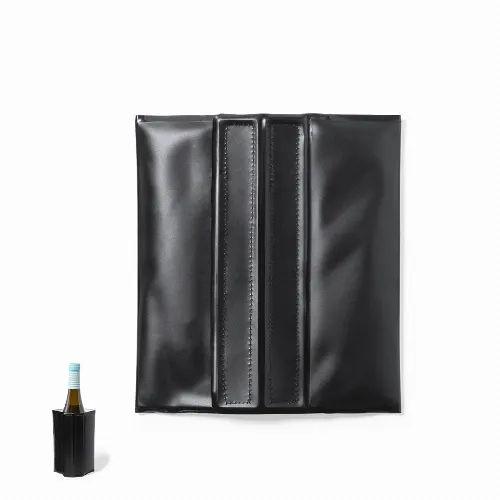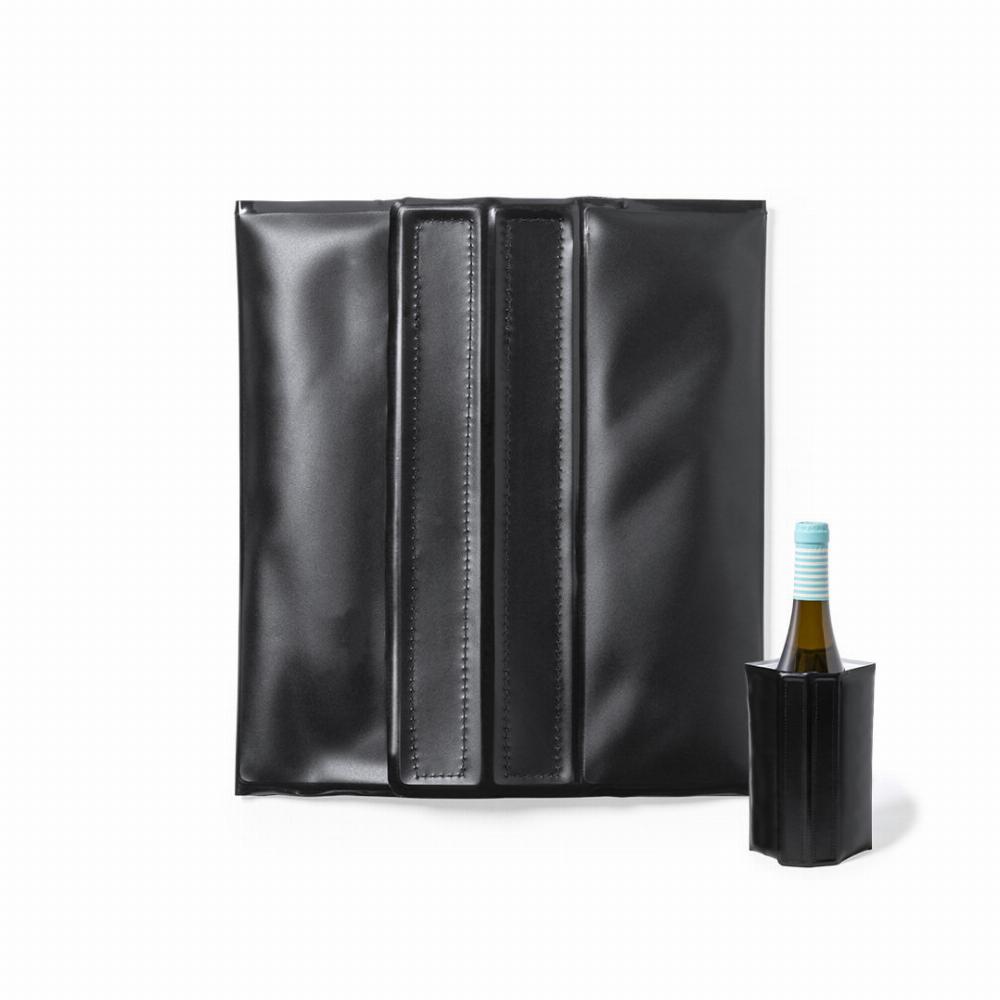 Cooler with adjustable velcro fastening, liquid coolant inside and made of matte black PVC..