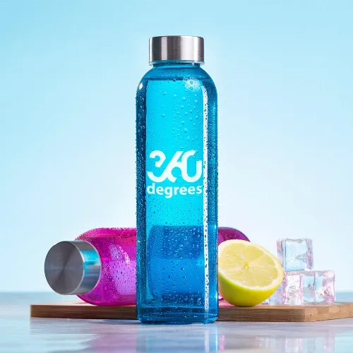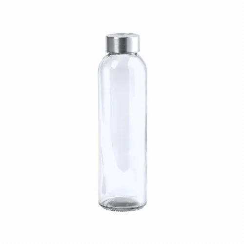 High quality, 500ml capacity glass bottle with BPA-free transparent body and stainless steel screw cap.