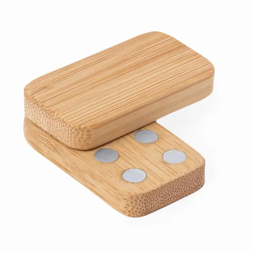 Made in two pieces, with magnets to be joined and separated as many times as desired, releasing tension due to its characteristic movement and sound. Presented individually in a kraft design box. Materials such as bamboo promote the use of natural raw materials and reduce pollutant emissions. In addition, bamboo comes from a highly resistant and versatile plant, with rapid growth and regeneration, making of it an excellent alternative to the use of traditional wood.