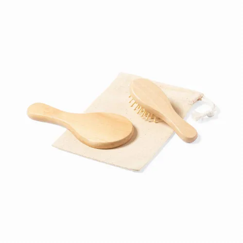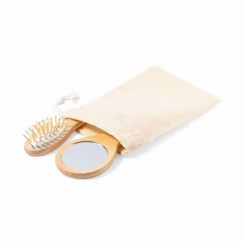 Set of mirror and brush, made in natural wood.