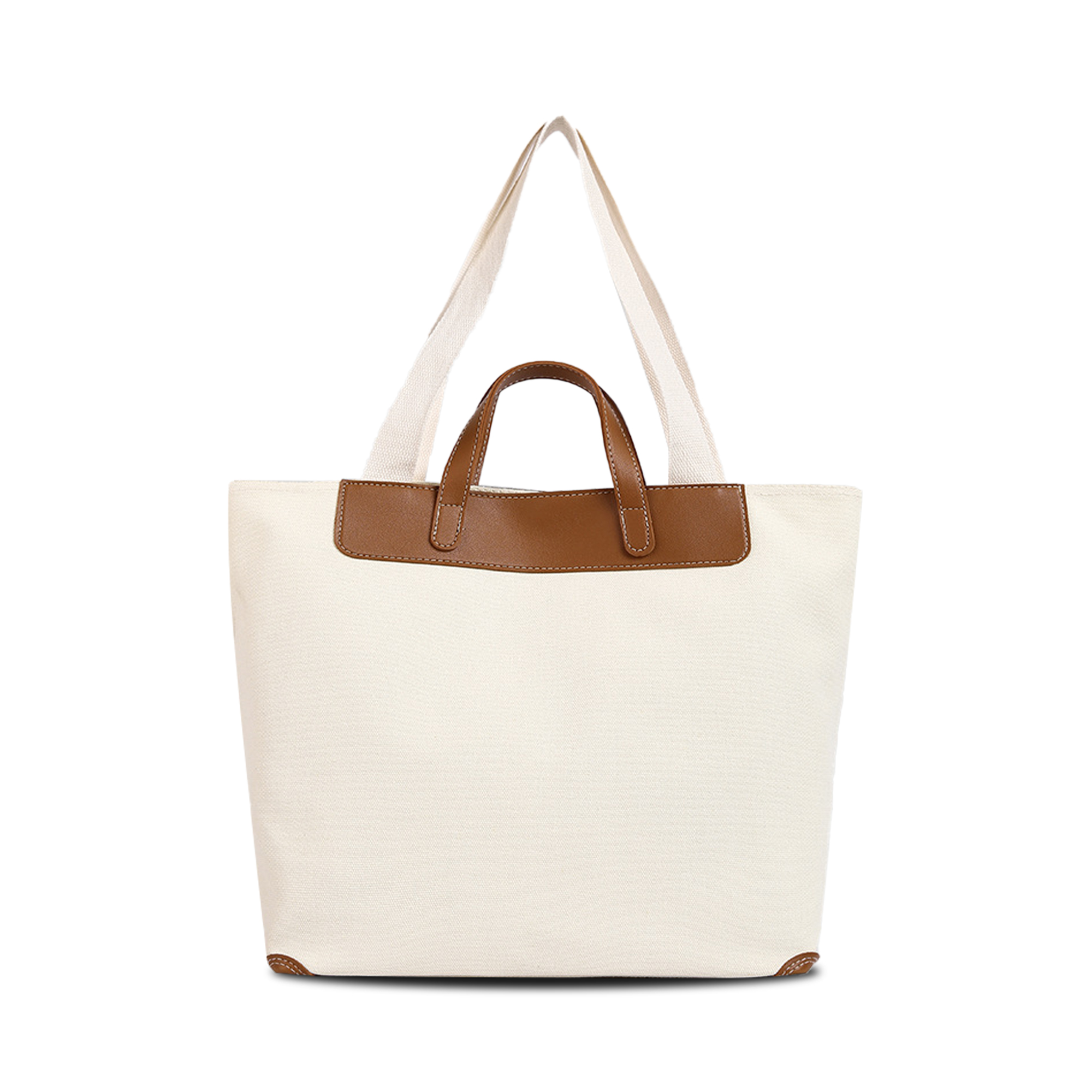 Carry your daily essentials effortlessly with our Canvas Bag With Leather Handle! Made from 450gsm canvas and PU leather. With screen print, heat transfer or digital print to highlight your logo. The bag is equipped with a magnetic snap for easy opening and closing, and the material of the handle is PU leather, which makes it more durable. Its classic design makes it a great promotional gift for brand events.