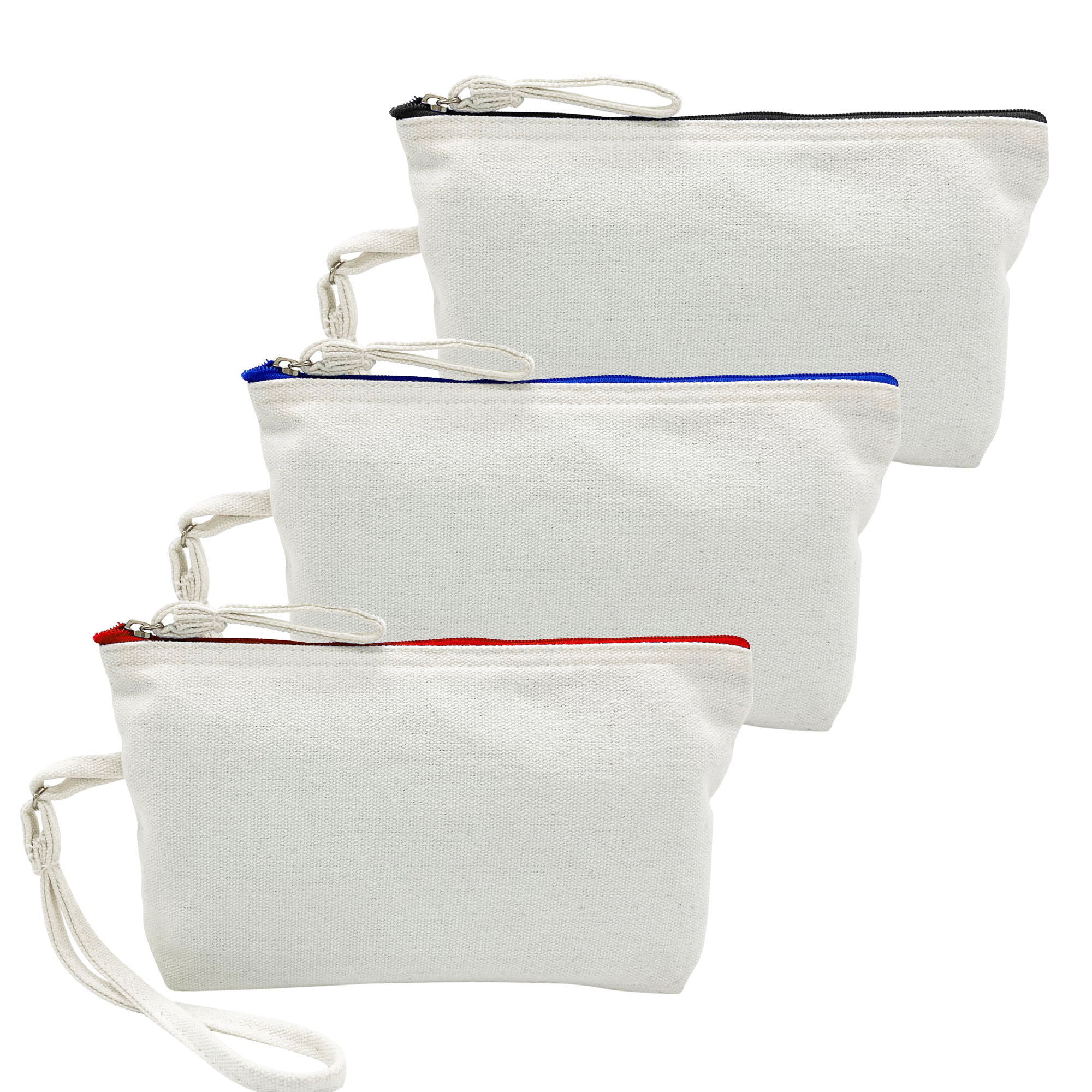 10oz 100% cotton canvas coloured zip with white handle. A perfect cosmetic bag for travellers you can also use this bag for pencil cases.