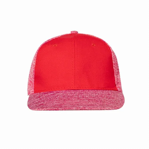 Combination design of solid color front panel with rest of panels and visor in bicolor finish and in matching color. With embroidered ventilation holes and adjustable velcro closure.