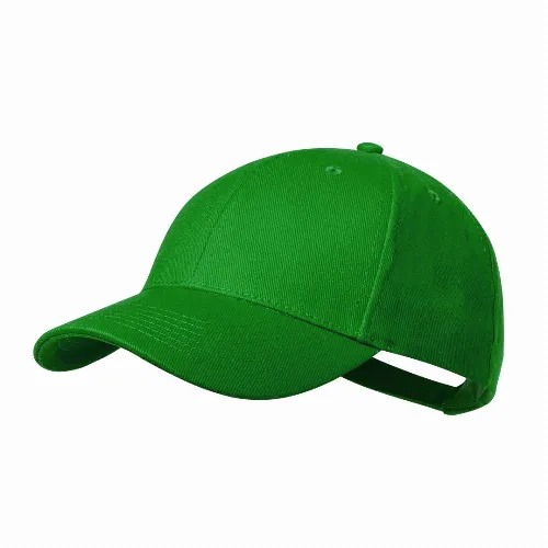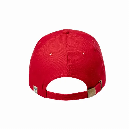 With adjustable buckle fastening and embroidered ventilation holes. Available in a variety of colours, with cotton organic cotton logo label.