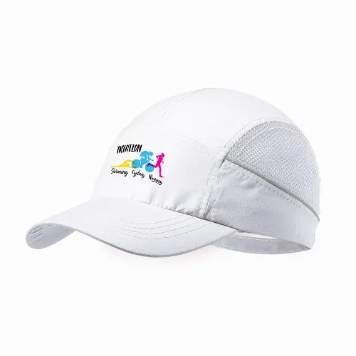 With matching sweat mesh on side panels and adjustable velcro fastening. With reflective bands on the sides and available in a wide range of colours -white color for sublimation printing-.