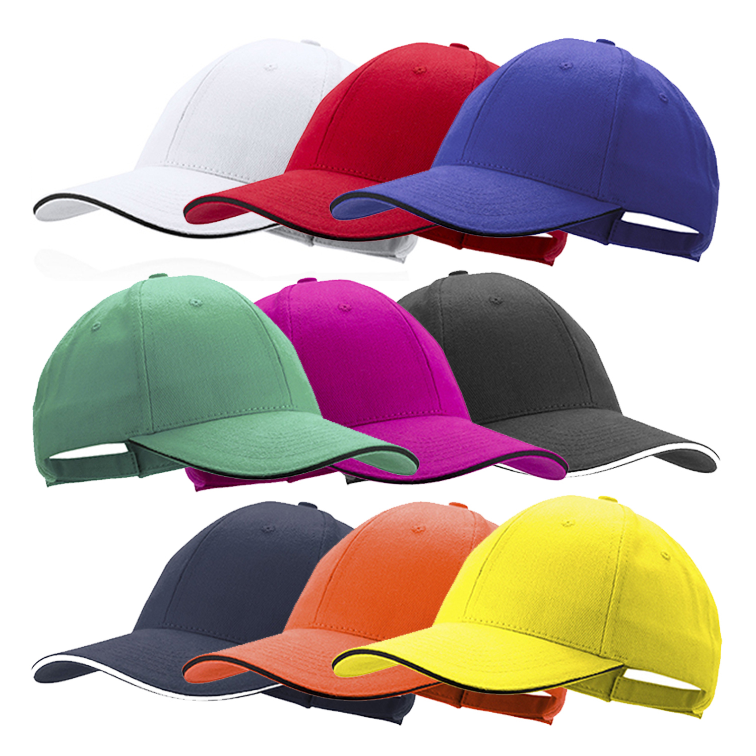 In a wide range of bright tones, with colored sandwich and padded visor. Embroidered ventilation holes and adjustable velcro closure.