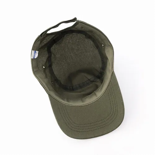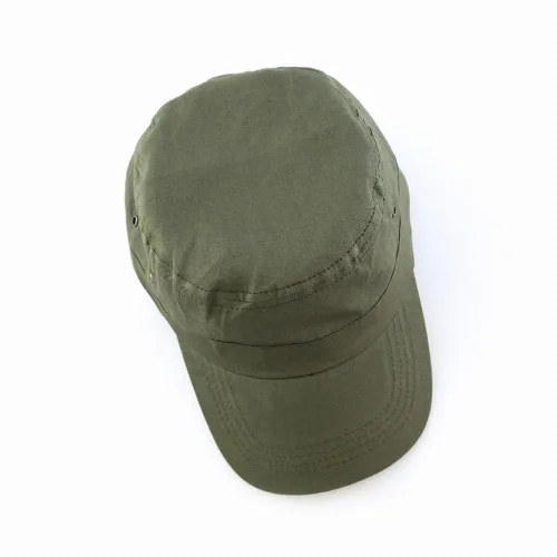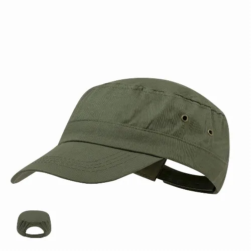 With lateral ventilation holes reinforced with metal ring and adjustable velcro closure.