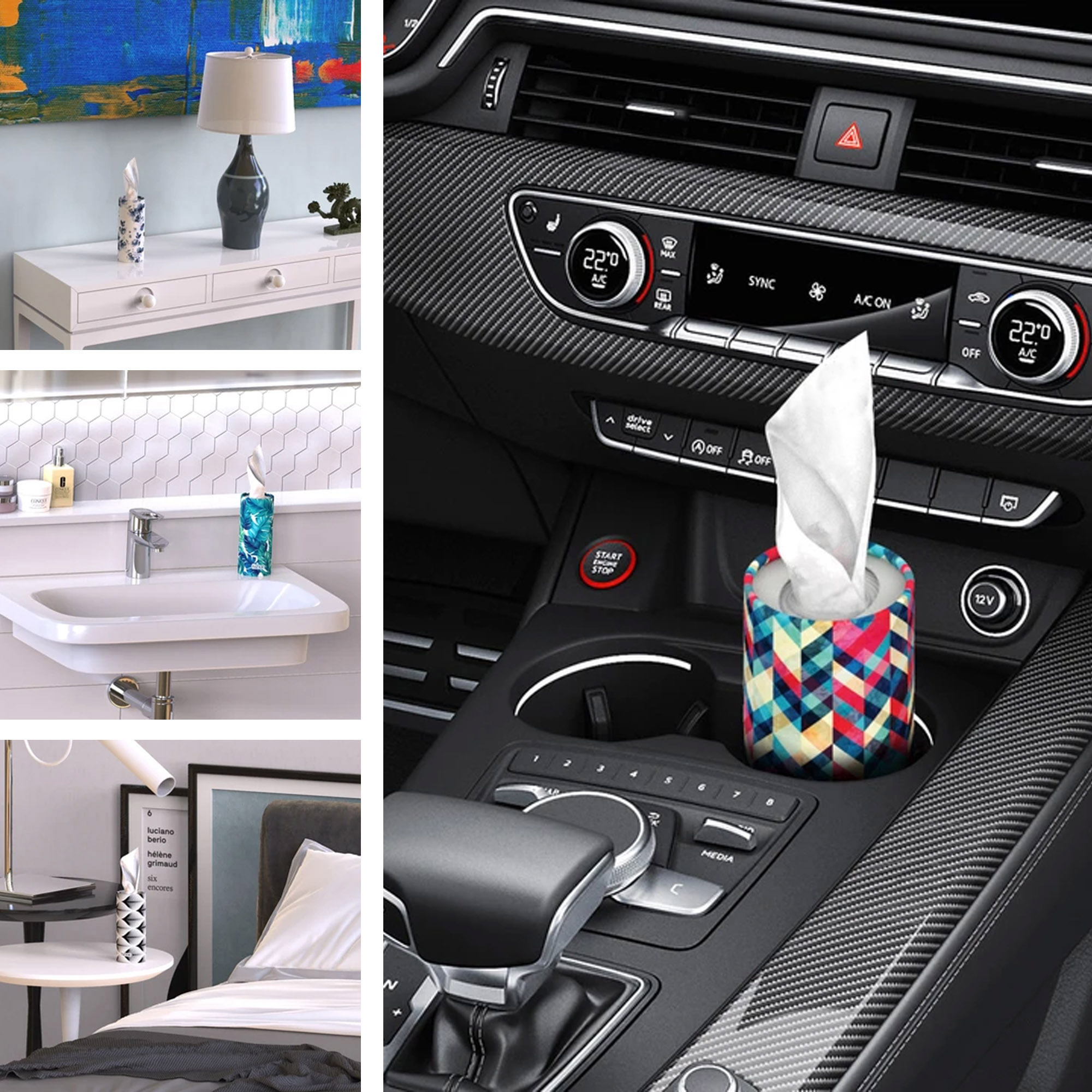 Car bucket dry tissues a great promotional product for car industry. Paper cylinder fits car mug holder 4 colour digital printing covers whole cylinder which displays huge amount of information. It contains 60 double layer tissues tissues can be refilled by opening bottom lid refill tissues are available for optional normal white tissue and brown bamboo fiber tissue(indent only).