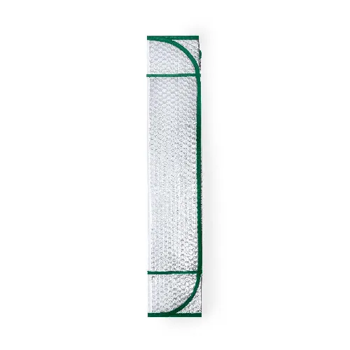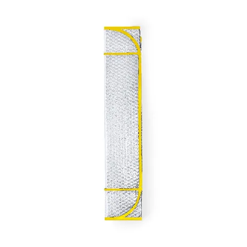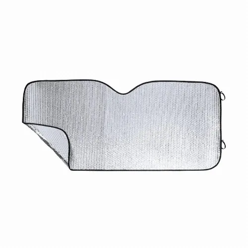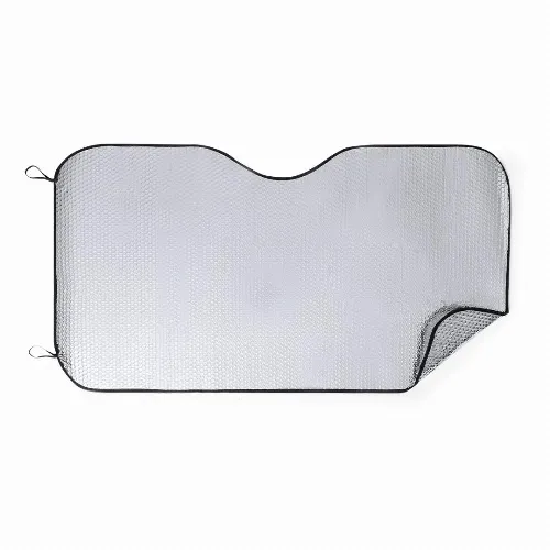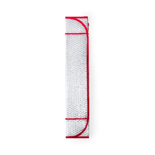 Metallic silver finish, with black piping and in size 130 x 70 cm. With elastic bands for folding and supplier unfolded for easy printing.