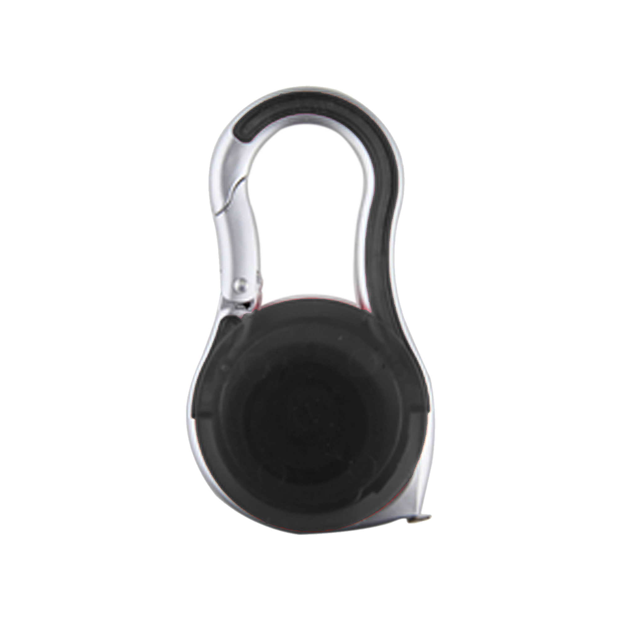 Plastic carabiner key tag tape measure with bendable 2 meters long metal ruler tape silver trim with coloured semi transparent on sides carabiner hooks it onto your key chain.