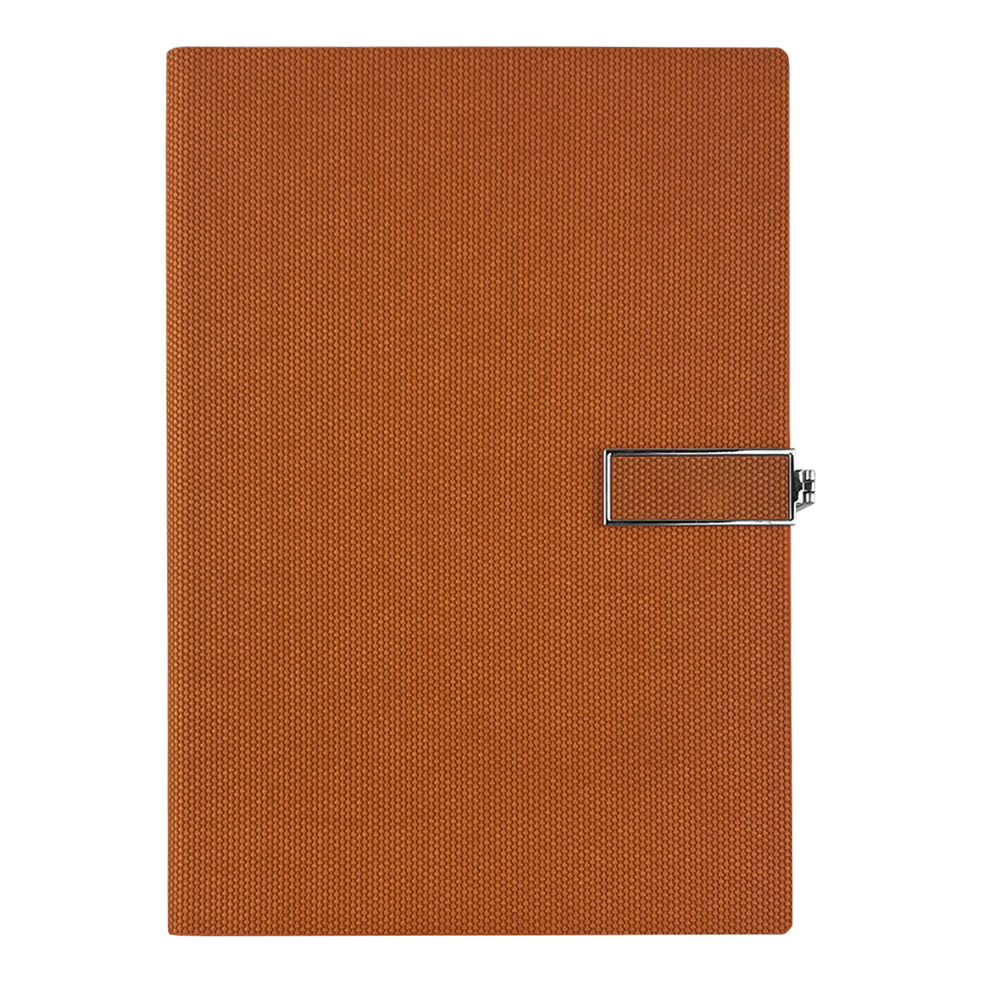 [0] => Cardboard cover, steel spiral, elastic loop, paper pages