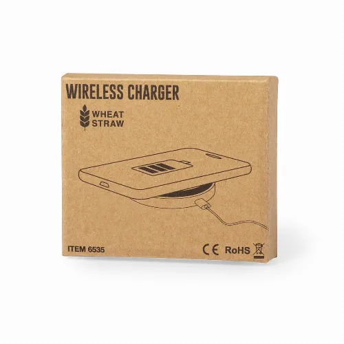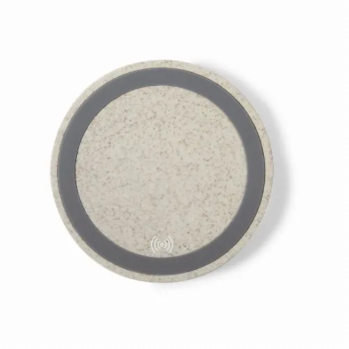 Shell inwheat straw, to encourage the use of natural raw materials and reducing contaminant emissions. With non-slip base and LED indicator for charging status. Compatible with smartphones with wireles charging technology and presented in an attractive, eco design box.