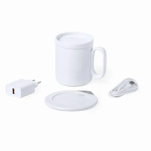 Including a 350 ml, ceramic mug, especially designed for heating and keeping the temperature of the beverage, with matching lid. Wall plug and Type C cable. Set presented in an attractive design box.