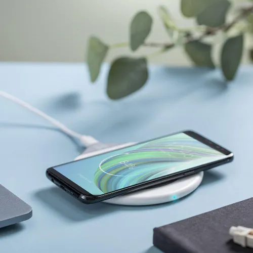 Mug heating device with built-in, wireless charger for fast charge -10W-.