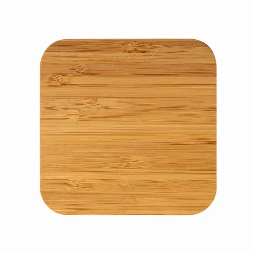 Shell in bamboo, from natural cut bamboo pieces. 2,100 mA ,dual USB output for simultaneous charging of up to 3 devices (1 device wireless charge and 2 devices via cable). With non-slip base and compatible with devices equipped with wireless charging technology. Presented in an attractive, eco design box.