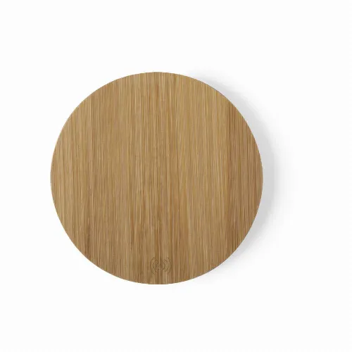 Shell in bamboo, from natural cut bamboo pieces. Charging indicator and compatible with devices equipped with wireless charging technology. Wide printing area and presented in an attractive, individual, eco-design box.