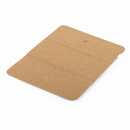 Made of natural cork, with Type C cable included-, non-slip base and integrated smartphone holder. Compatible with devices equipped with wireless charging technology and presented in an individual eco design box.