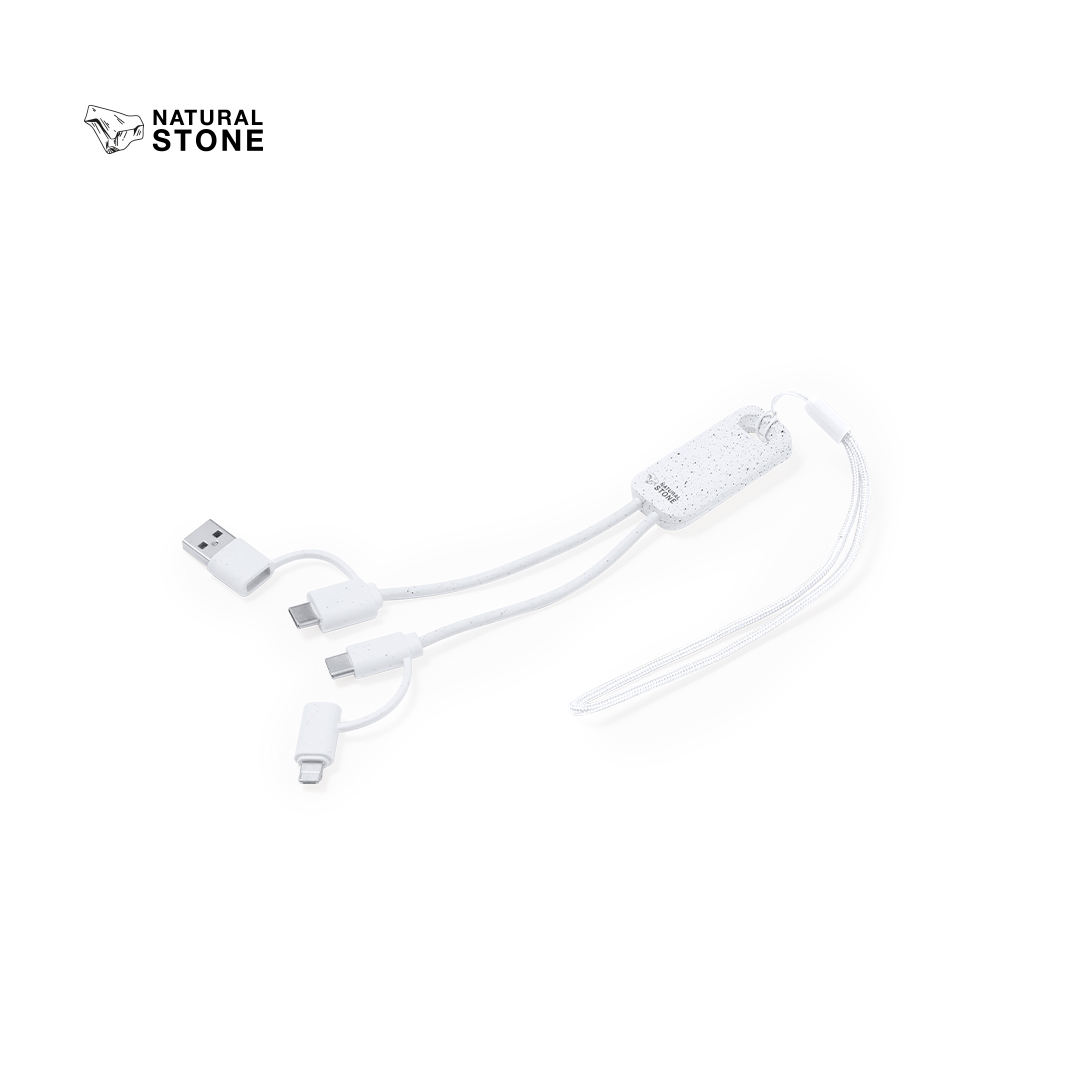 With Type C/USB input connections and Type C, Lightning and Micro USB outputs. 5V DC 2.4A. Presented in an individual kraft design box.Made from natural stone extracts, helping to reduce the use of plastics, as well as providing a smooth and resistant finish.