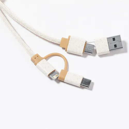 With Type-C and USB input connections and Type-C, Lightning, and Micro USB outputs. 5V DC 2.4A. Presented in an elegant design case made of wheat straw and bamboo closing lid, with holder function for smartphones. Made with vegetal elements to promote the use of natural raw materials and reduce pollutant emissions.