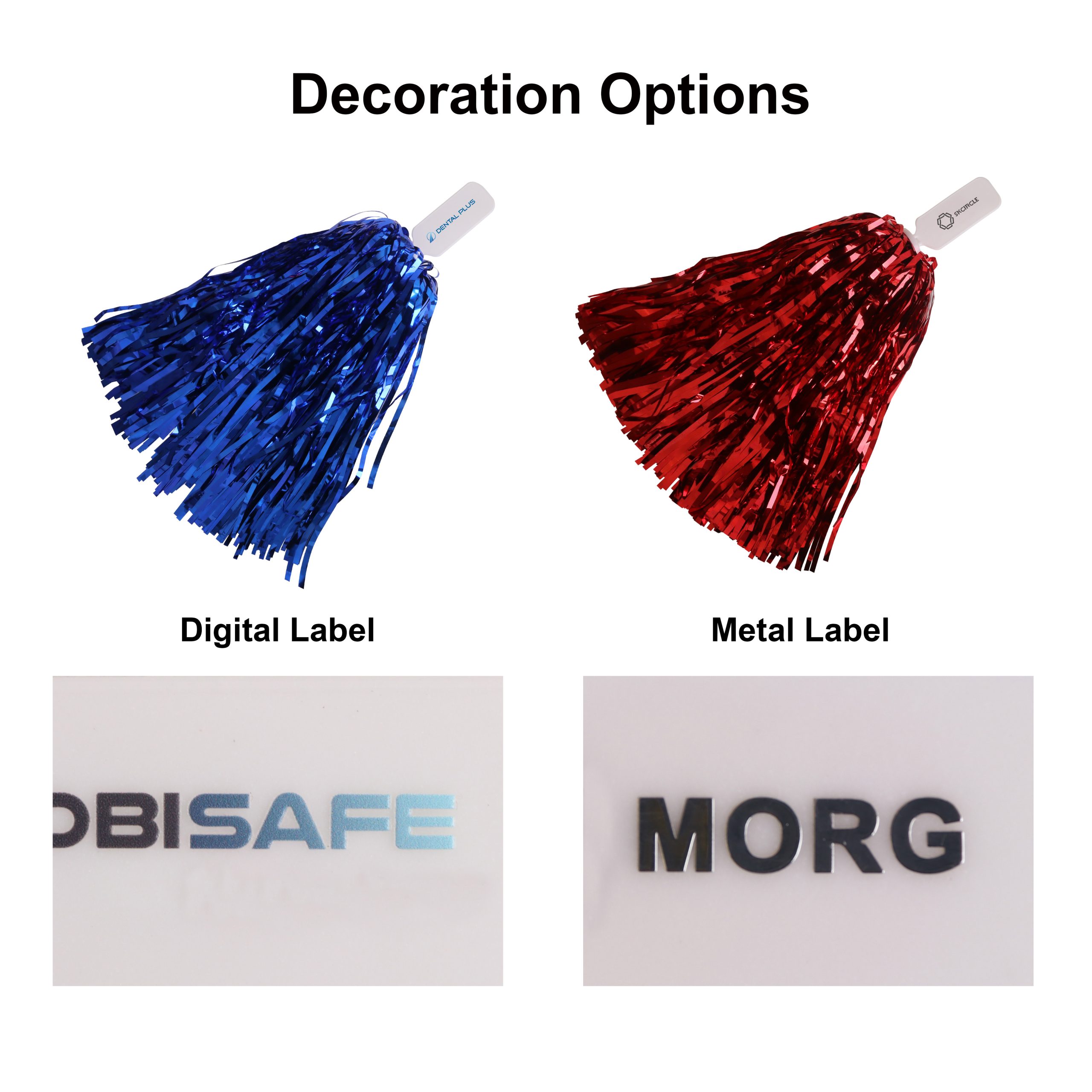 Promote your brand with our new Cheerleading Pom Poms! Made of recyclable PE tassels and a PP handle, this product is striking and eye-attracting. Available in glossy or textured tassels. Two-colour pom poms are also available. You can customize the handle with provided metallic or UV transfer stickers to feature your logo. Perfect for school sports events and team cheerleading activities. A great choice to boost your brand!
