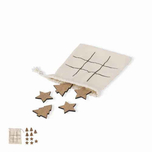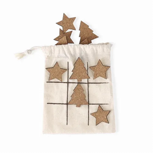 Including 5 tree-shaped tokens and 5 star-shaped tokens. Presented in a cotton bag with drawstring closure to be used as game board.Made with plant-based elements to promote the use of natural raw materials and reduce polluting emissions.