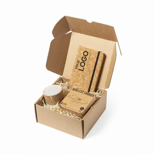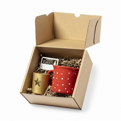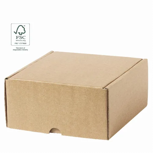 Small-sized presentation box, made of corrugated cardboard with a kraft finish.