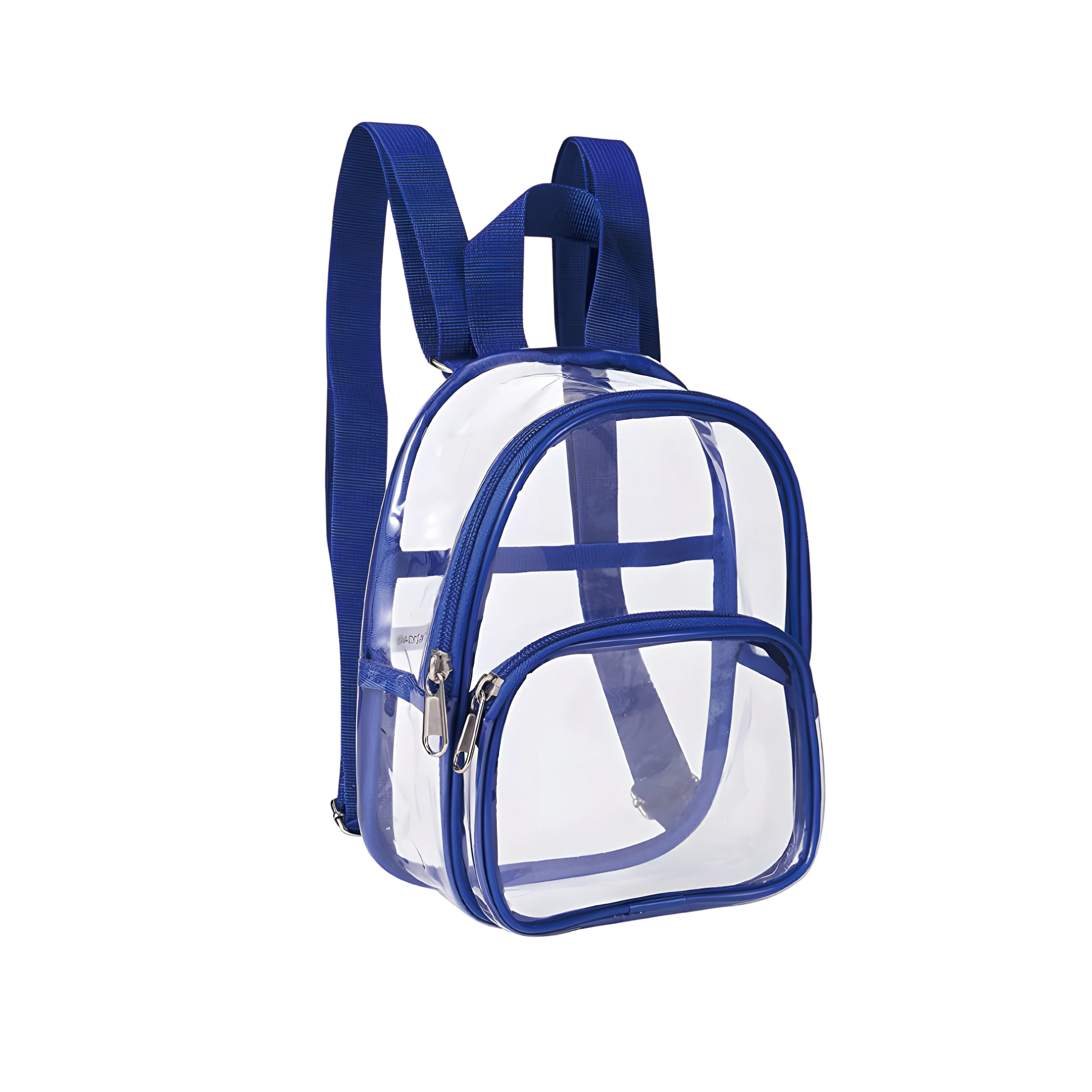 Get your brand seen with our new Clear Mini Backpack. Clear design lets you see items at a glance. It is equipped with adjustable shoulder straps and can be adapted to different heights. Made from 0.4mm thick transparent PVC. With screen print or digital print to highlight your logo. Roomy enough for daily essentials, ideal for commuting, shopping, or traveling.