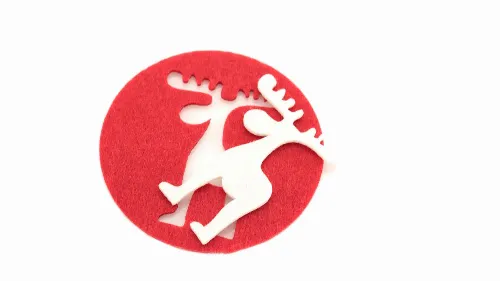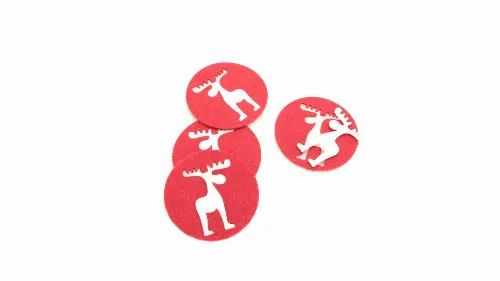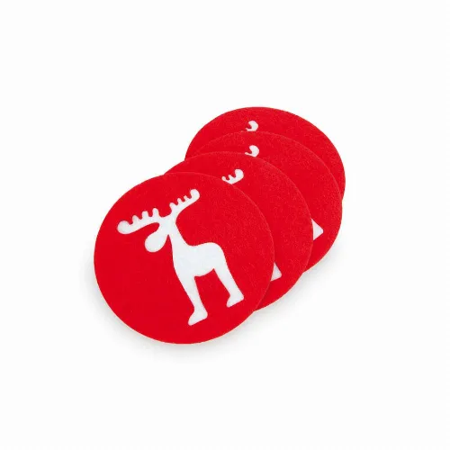 Set of 4 coasters in soft and resistant felt with reindeer designs..