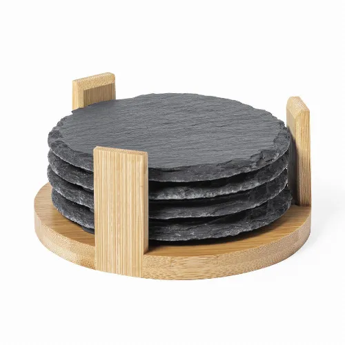 Set of 4 coasters made of natural slate, with bamboo holder.