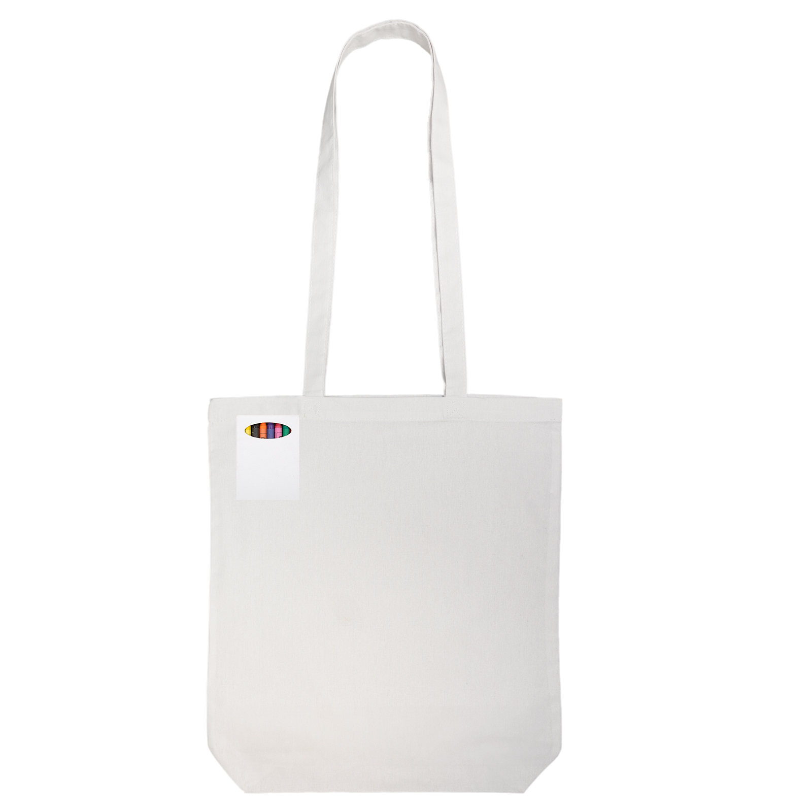 Creative, fun and interactive, the Colouring Long Handle Cotton Bag & Crayons set is a unique promotional item designed to engage younger audiences. Supplied with eight assorted non-toxic wax crayons, this white cotton bag features your custom screen-printed design, ready to be coloured in directly on the fabric. Ideal for school programs, kids’ events, or brand activations, the bag can be washed and reused—allowing the artwork to be coloured in again and again.