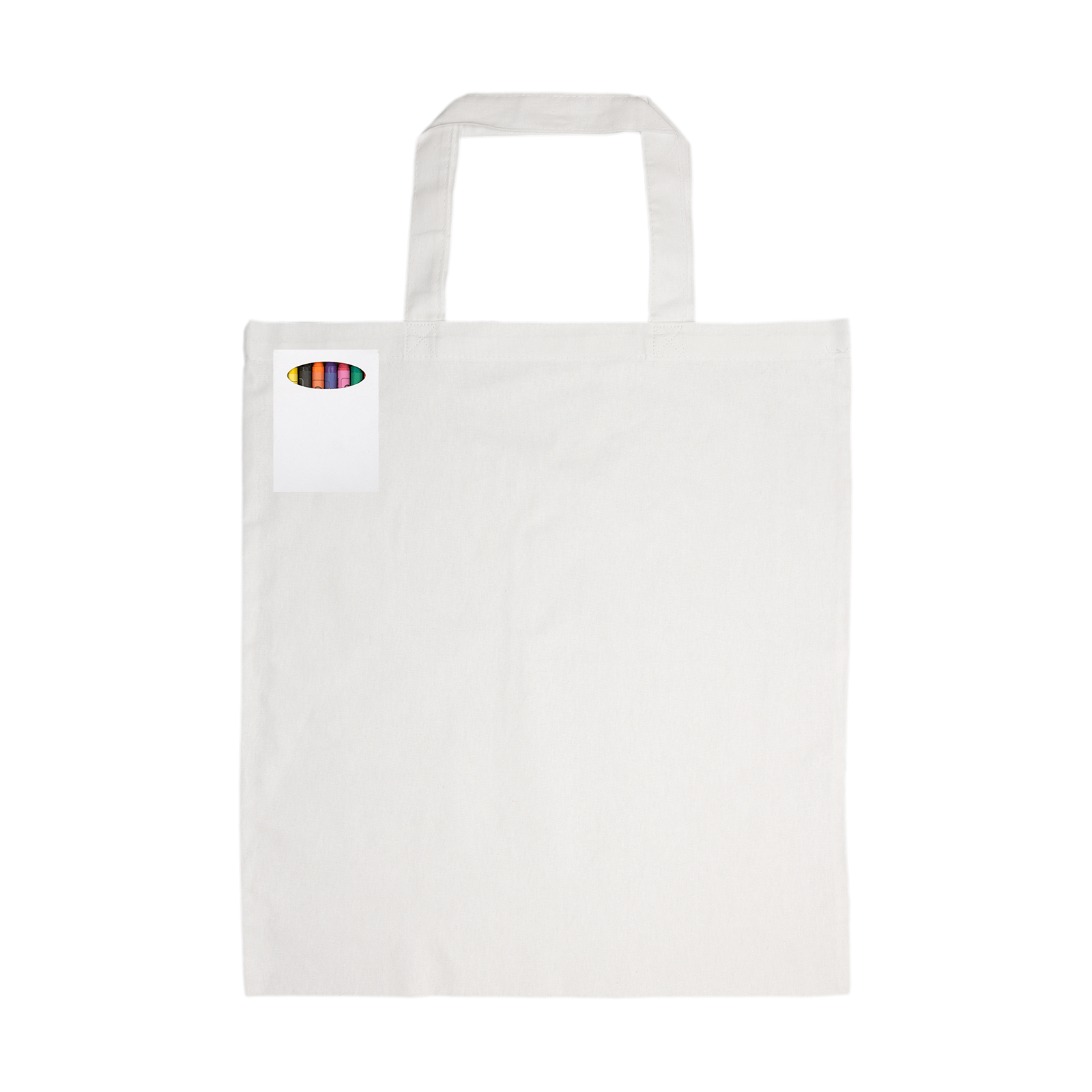 Add creativity to your next promotion with the Colouring Short Handle Cotton Bag & Crayons set. Featuring your custom design printed on a white cotton short handle bag, this fun activity pack is perfect for schools, events, and kids’ giveaways. Supplied with eight assorted non-toxic wax crayons, the design can be coloured in directly on the bag—then washed and coloured again, offering repeat engagement and long-lasting brand visibility.