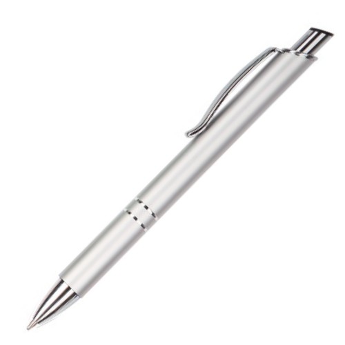 Matt anodized aluminum barrel with rings, solid black top, metal clip, polished plated trims.