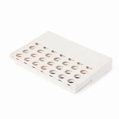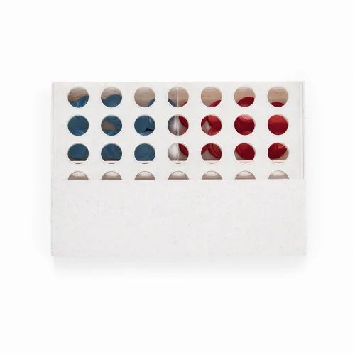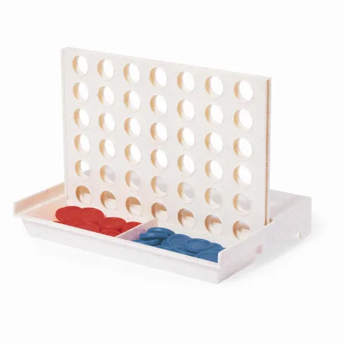 Composed of a vertical board and 42 circular pieces (21 red and 21 blue). Exciting for all ages by inserting the pieces through the slots to get 4 pieces in 1 row. Easy to assemble thanks to its mobile board that can be unfolded or folded. Presented in a kraft design box.
