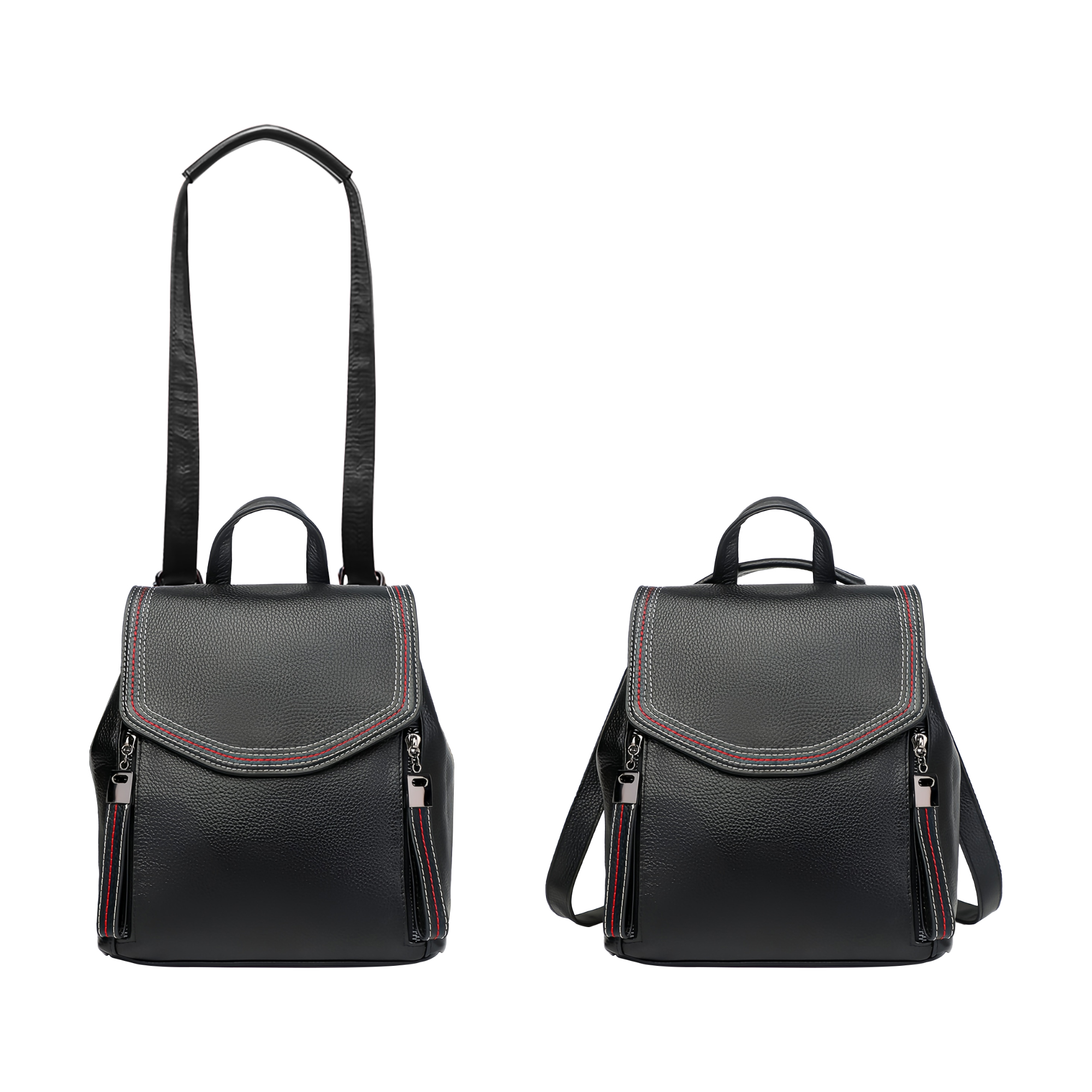 This Convertible Leather Backpack is perfect for daily use which can be easily converted to a crossbody bag, featuring 2 front zipper pockets for essentials, a back zipper pocket and a main pocket with a magnetic snap. Our high-quality backpack is made of top-grain leather, that is water resistant and durable. You can showcase your design with debossing.