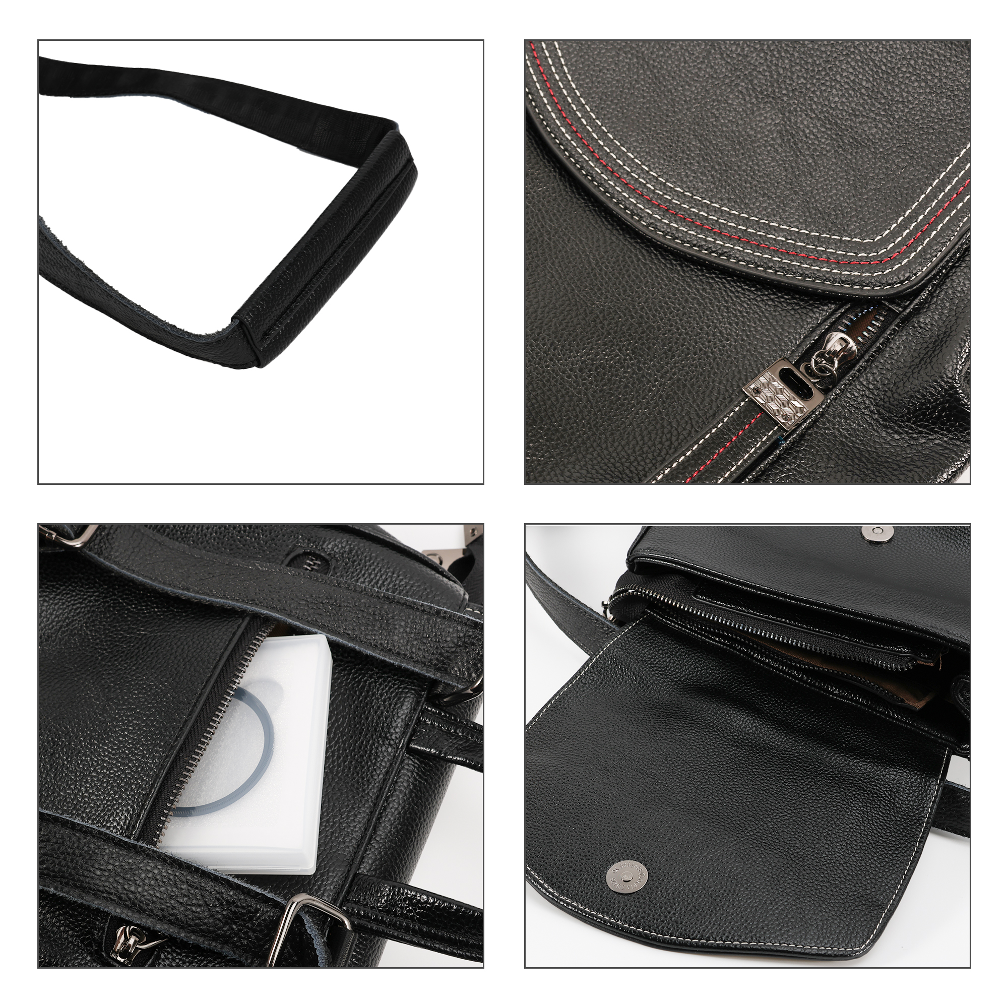 - Made of top-grain leather, water resistant and durable