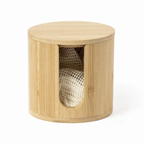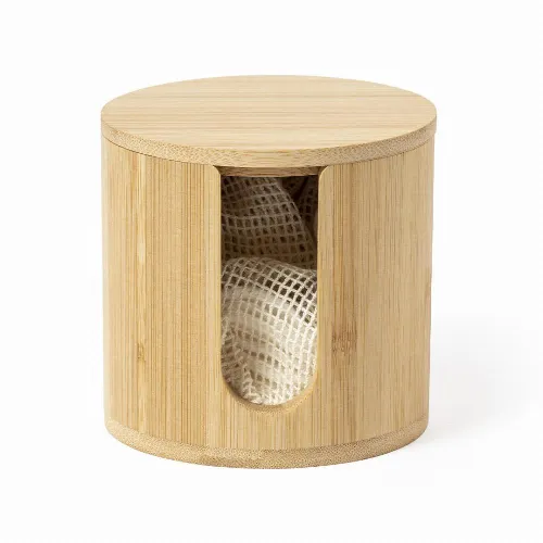 Made in bamboo, to promote the use of natural raw materials. Including 10 reusable cotton discs and a washing bag. Presented in an individual, eco-designed box.