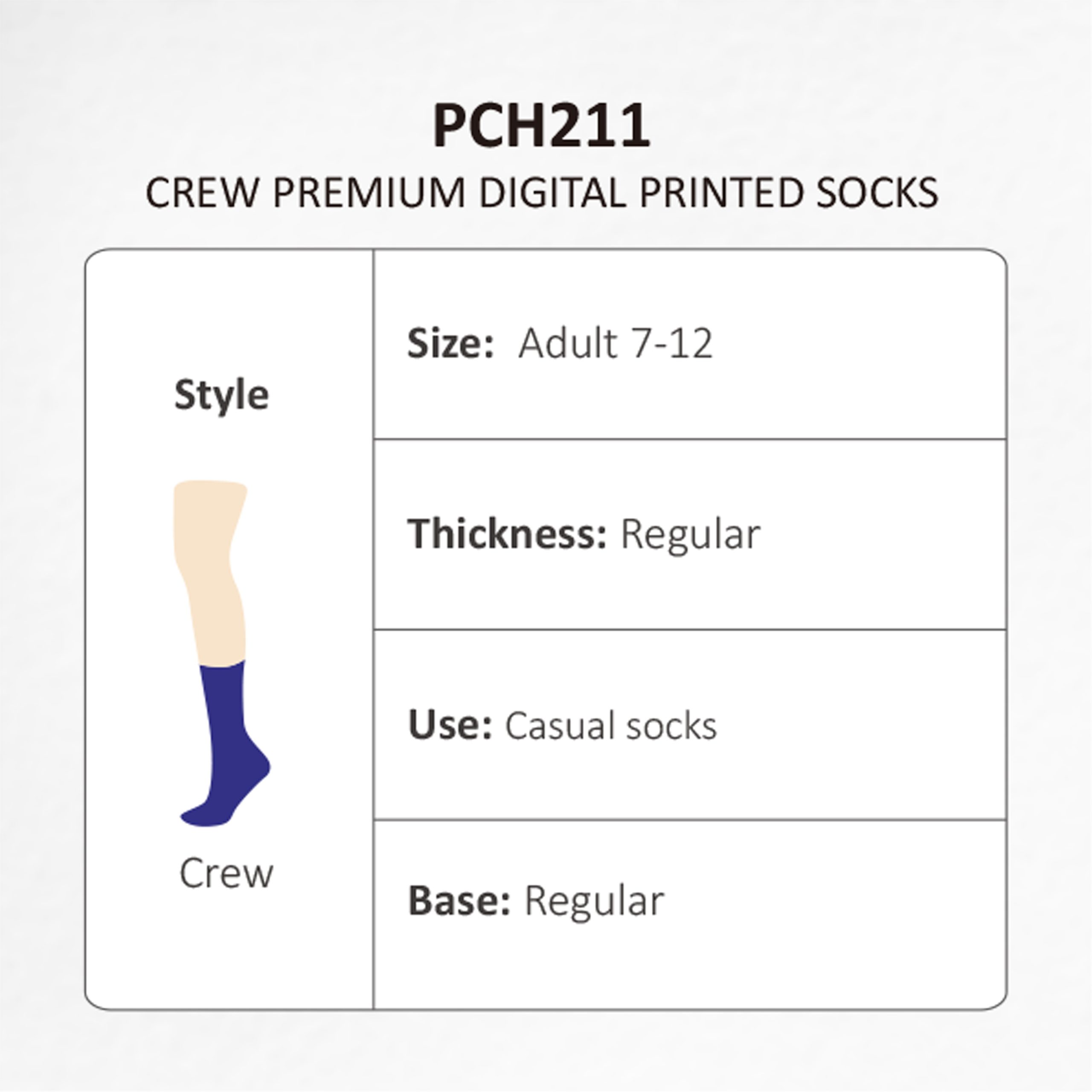 Create your own unique socks with our new Crew Premium Digital Printed Socks! Made of cotton and polyester material, which is soft and comfortable. With digital print to highlight your design. Customized patterns on socks can enhance the effect of brand promotions. The crew premium digital printed socks provide men and women with high quality, on trend, colourful and unique designs that add an element of individuality to an everyday wardrobe essential. In addition, you can choose to add a backing card hanger to display your brand.