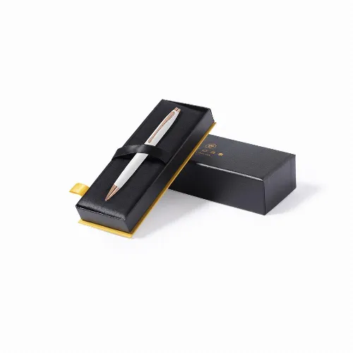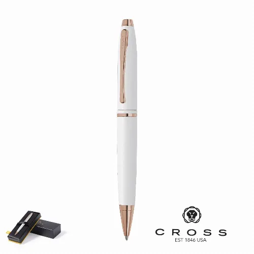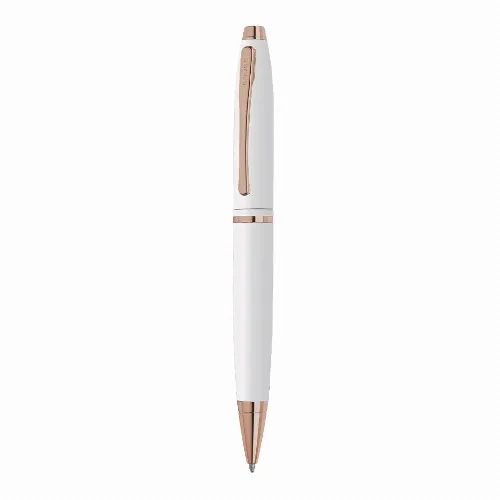 Cross pen with a retractable mechanism, distinguished two-tone design in white with elegant rose gold accents.