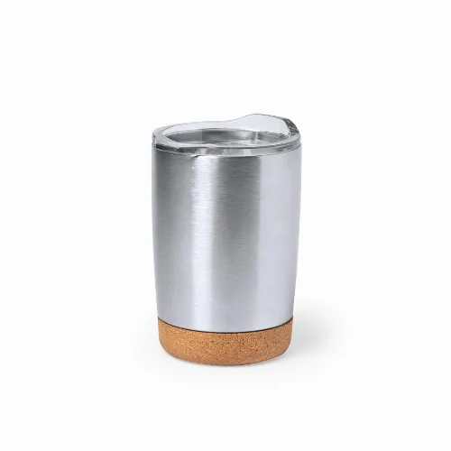 Top table glass made of a combination of a natural cork base with a stainless steel body in white finish, 380 ml capacity.