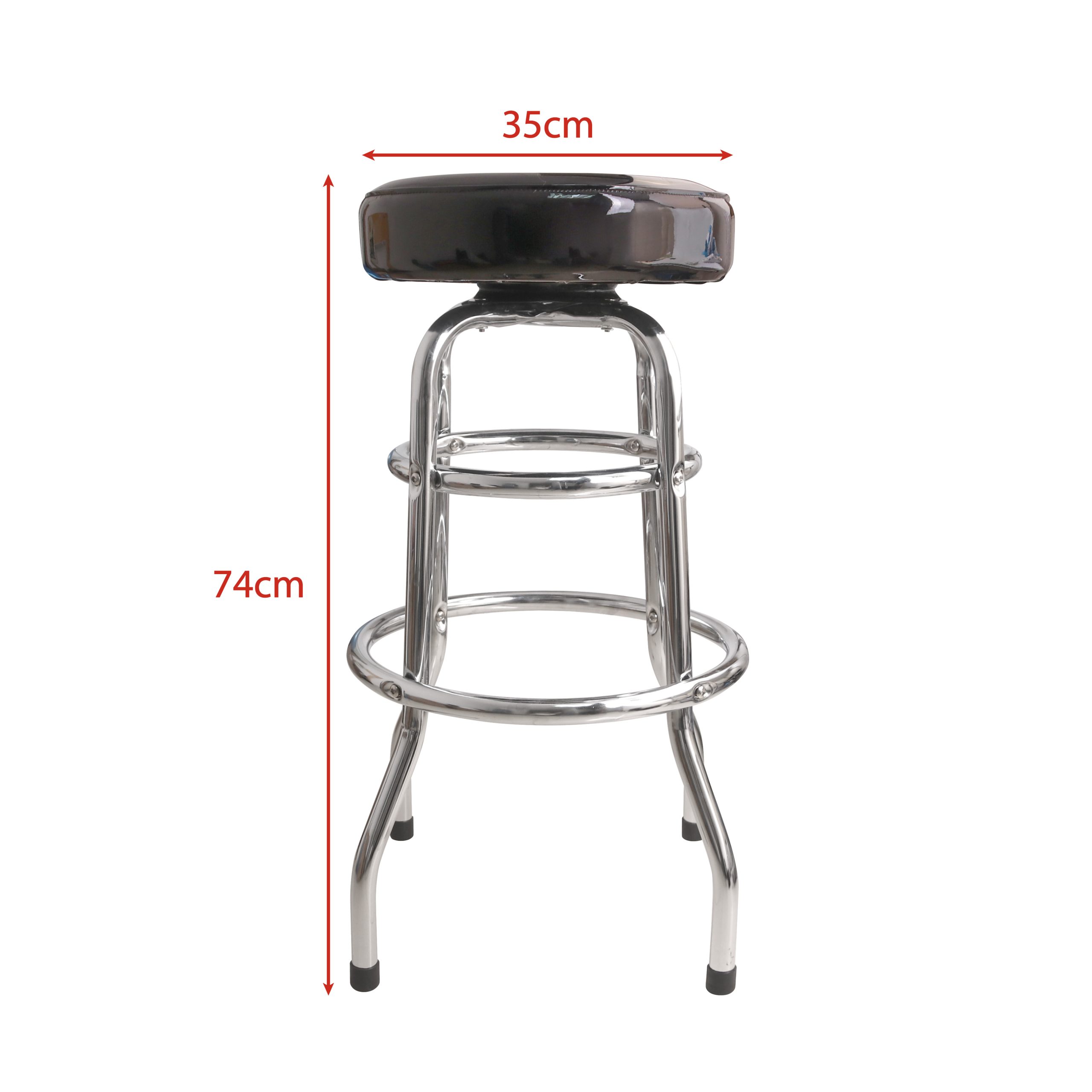Get your branding seen, at your next bar activity, with our premium quality bar-stool. Complete with custom seat cover, and screen print to show off your branding. Our bar stool is constructed from a heavy gauge tubular steel frame with a lustrous chrome plated finish. The thick foam padded seat consists of commercial grade vinyl and the seat also rotates on a 360 degree revolving swivel. Some assembly is required. It has a strong construction that can withstand weight up to 120kg.