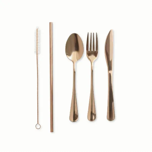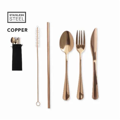 5-piece cutlery set made in stainless steel with galvanised copper coating.