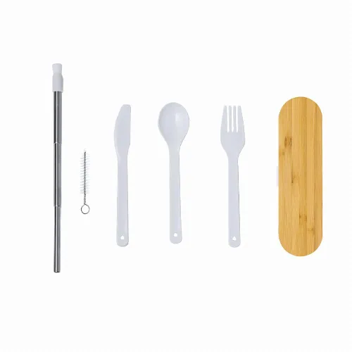 Cutlery set made of PP and BPA free, with matching display box and with bamboo lid.