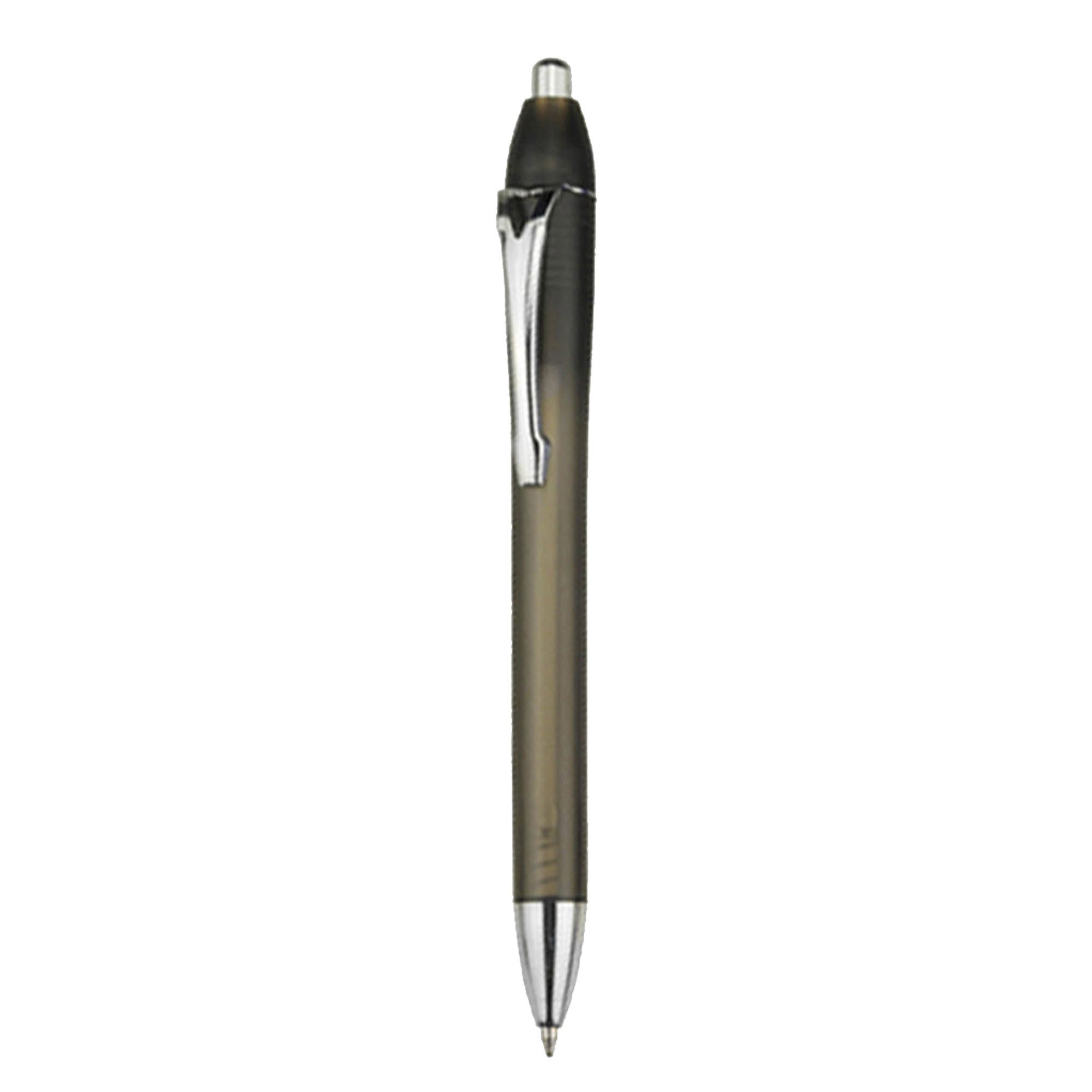 A frosted translucent plastic pen with shiny chrome fittings retractable action high quality German manufactured black ink refill 1800 meters writing distance tungsten carbide ball provides you with quality writing.