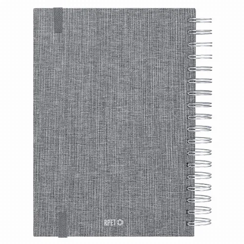 B5 size ring diary in soft and resistant RPET, with hard covers and elastic band closure.