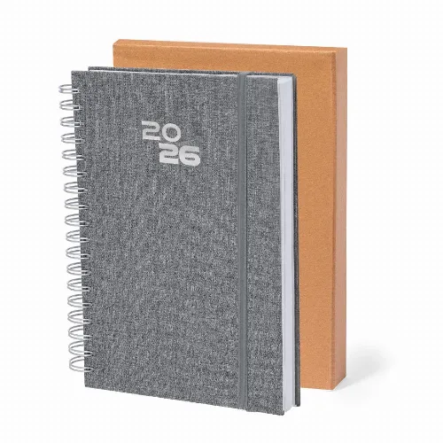 It includes a kraft presentation box and an RPET logo.Day page design, with an area for notes and microperforated corners. In 2 languages: English and Spanish.RPET material is made from recycled plastic, thus promoting the reuse of plastic waste and helping the sustainability of the planet.