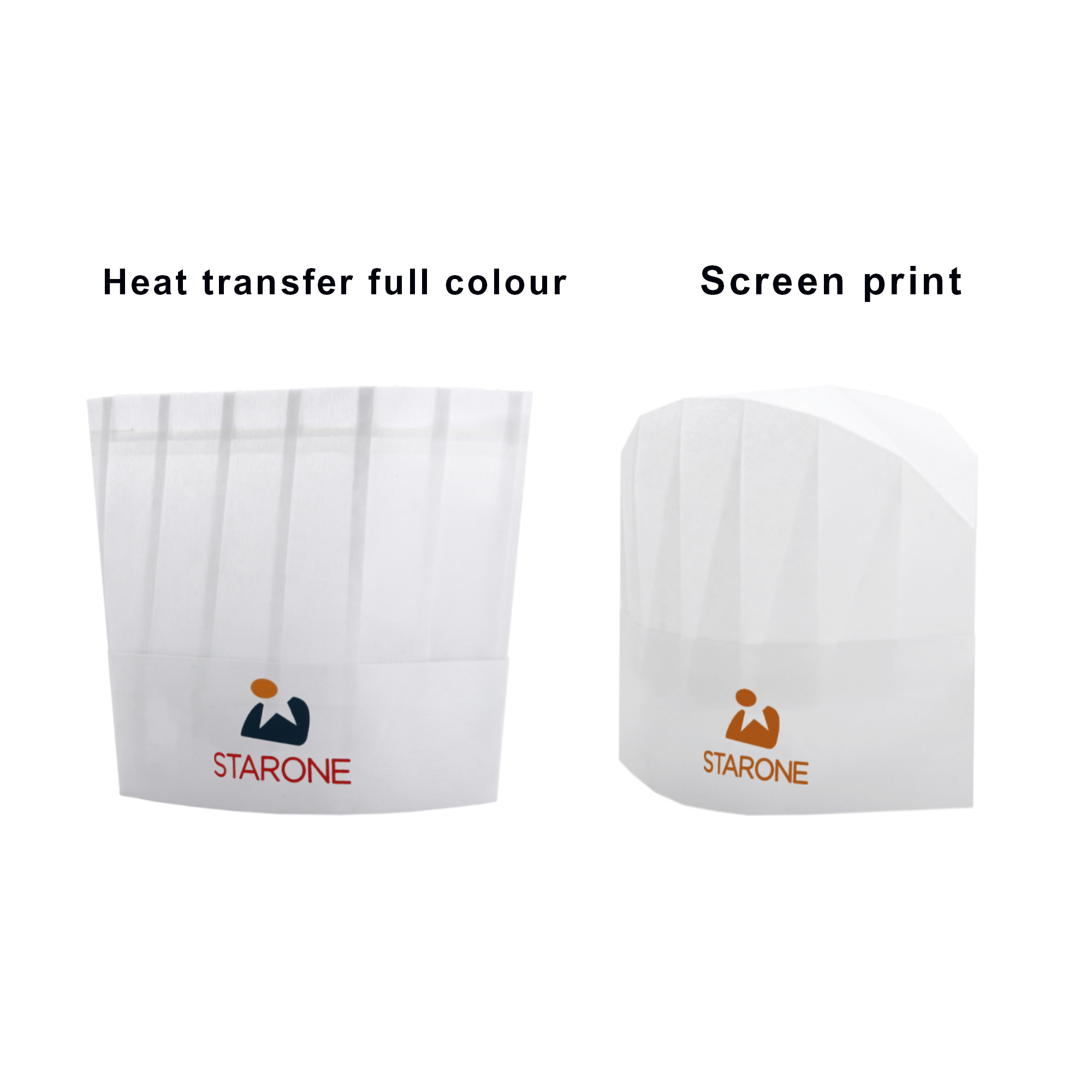 Set your little chefs free, with our Disposable Non-woven Kids Chef Hats! Made from lightweight 60gsm non-woven fabric, these hats are comfortable and perfect for playtime or parties. Available in white. With screen print or heat transfer full colour to highlight your logo. Whether for cooking classes, birthday parties, or dress-up fun, these hats add a fun touch while keeping cooking sanitary. Ideal for any creative kitchen experiences!