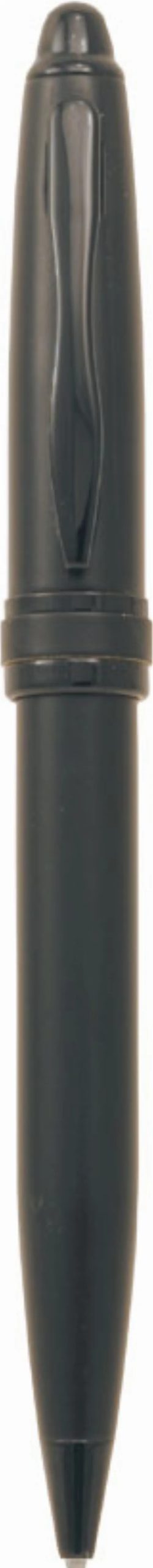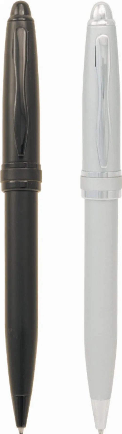 A striking twist action metal pen with shiny fittings. Parker style black refill.