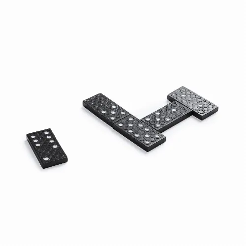 Made of wood, with pieces in an elegant black color with white color details. Presentes in an individual wooden case.